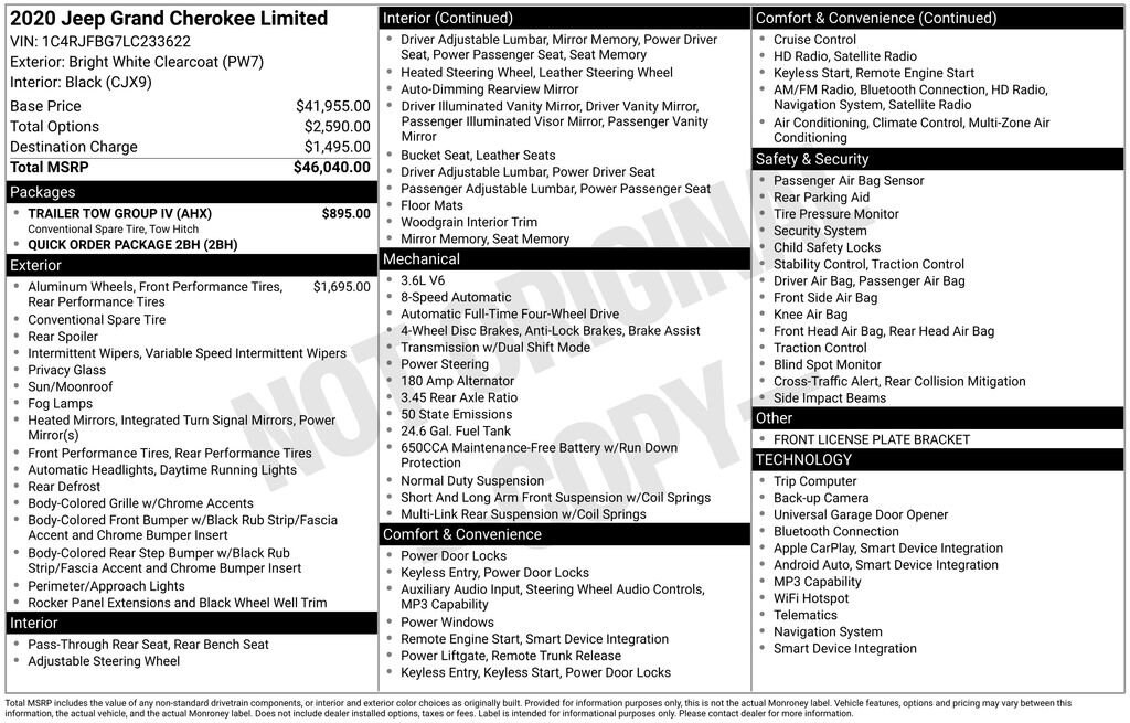 **Accident Free**2020**Jeep**Grand Cherokee**Limited**4WD**Navigation**Sunroof**Heated Seats**Heated Steering Wheel**