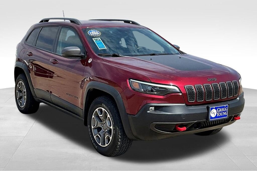 **One Owner**2021**Jeep**Cherokee**Trailhawk**4WD**Heated Seats**Heated Steering Wheel**Amazingly capable, our One Owner 2021 Jeep Cherokee Trailhawk 4X4 in Velvet Red Pearl makes molehills out of mountains! Powered by a robust 3.2 Liter Pentastar V6 providing 271hp connected to a 9 Speed Automatic transmission for confidence on tough terrain. This rugged Four Wheel Drive SUV also achieves nearly 24mpg on the highway and makes the most of its modern Jeep style with LED lighting, fog lamps, heated power mirrors, roof rails, and eye-catching alloy wheels.The Trailhawk cabin inspires you to expand your horizons in comfort thanks to premium-cloth heated front seats with eight-way power for the driver, an easy-to-fold second row, a heated premium-wrapped steering wheel, dual-zone automatic climate control, and remote start. And since you need to be connected even off the beaten path, Uconnect 4 technology is standard as well, with an 8.4-inch touchscreen, Apple CarPlay/Android Auto, Bluetooth, and a six-speaker sound system for an adventure-friendly soundtrack.Jeep keeps you out of harm's way as you explore your world with a rearview camera, automatic braking, a blind-spot monitor, adaptive cruise control, automatic parking assistance, ABS, and advanced multistage airbags. Challenging the ordinary is what our Cherokee Trailhawk is all about! Save this Page and Call for Availability. We Know You Will Enjoy Your Test Drive Towards Ownership!